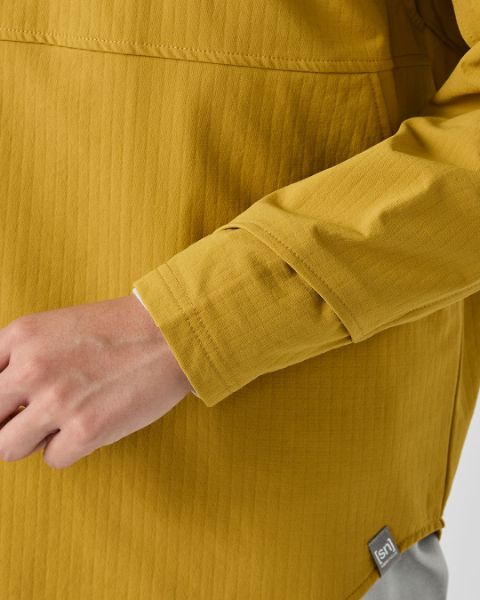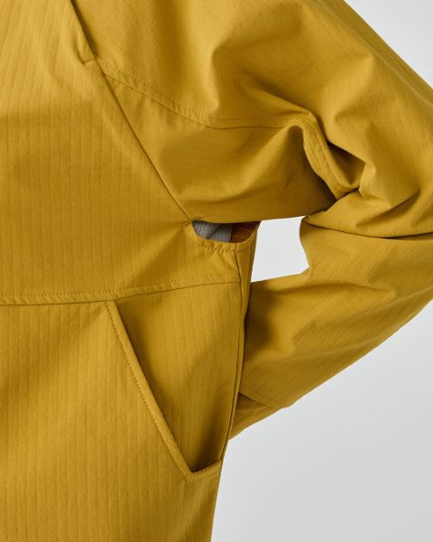 - 4方向への優れたストレッチ性と撥水性(※)、防風性、透湿性、坊シワ性を持ち合わせた2重織多機能素材〝ストームフリース″を使用。