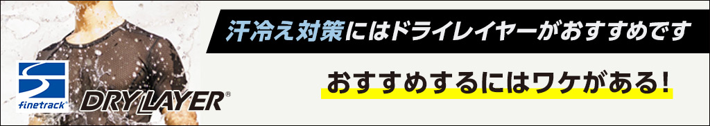 レインウェアは防水だけでなく防風ウェアとしても使用できます。また肌をドライに保つファイントラックのドライレイヤーは汗冷え対策に非常に有効です。