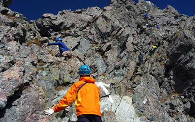 - 山頂に続く岩場も夏山の醍醐味、三点支持で落ち着いて登りましょう。