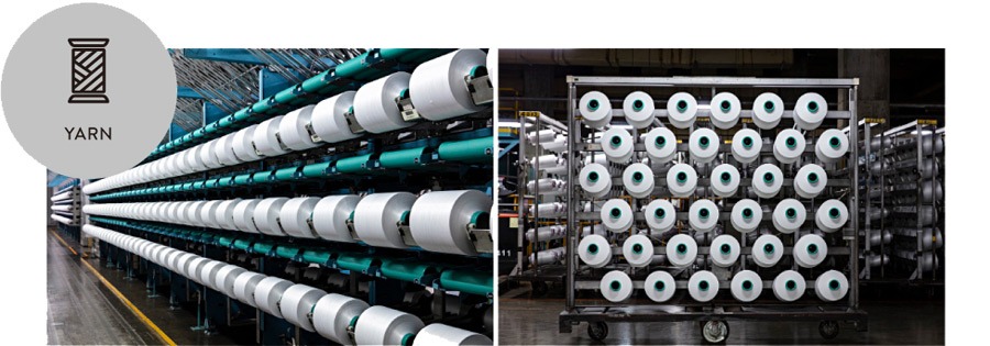 ペレットを溶かし、長い繊維として引き伸ばし糸を紡ぎます。 -