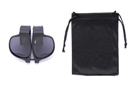 テンプルがくるっと丸まり、フレームが折り畳めるため、コンパクトに収納が可能です。荷物の多いアウトドアシーンにぴったりな、今までにない新しいアウトドアグッズです。専用の布製ポーチ付きで本体への傷も防げます。